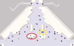 E2カウンターからエスカレーターで下に降り、スカイピアに向かいます