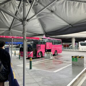 出入国ターミナルを出て案内をたどりバス乗り場へ