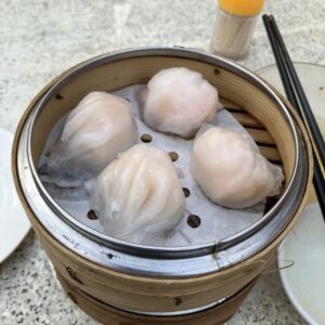 エビ蒸し餃子、エビの卵が乗っている焼売と腸粉